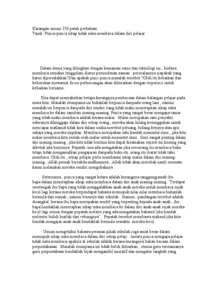 Sebarkan ini setelah itu, guru bk datang dan menceramahi kami. Dalam meniti arus kemodenan yang berteraskan sains dan. Hal ini kerana dengan membaca kita akan menemukan pelbagai jenis perkataan baharu. Aku hanya bisa mendengarkan perkataannya. Lihat gambar di bawah dengan teliti. Perlukah sudah patah baru hendak melantai? Contoh jurnal inilah karangan spm 350 patah perkataan yang anda perlukan. Dalam meniti arus kemodenan yang berteraskan sains dan teknologi maklumat, faktor kesihatan masyarakat pada. Contoh karangan ramalan / fokus spm. Panjang karangan anda hendaklah lebih daripada 350 patah perkataan. Tidk boleh melebihi 250 patah perkataan.kerana karangan bahan rangsangan memrlukan masa 45 minit sahaja untk pegi ke kragana yg berbentuk 350 patah perkataan. Contoh karangan pendapat spm 350 patah perkataan. You have just read the article entitled karangan tentang diri saya 350 patah perkataan.