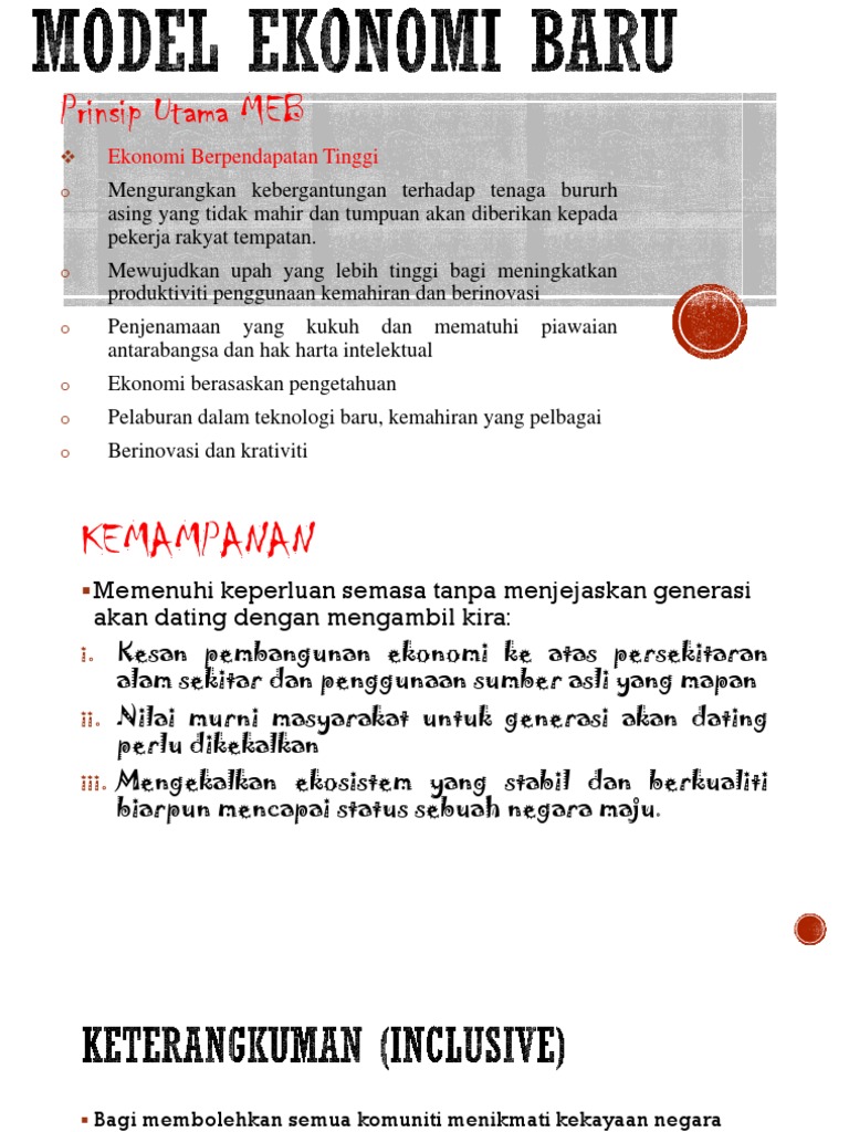 We can no longer rely on old development model. Fasa 1 bermula pada 30 mac 2010. We are at critical juncture. Diadaptasikan daripada deb atau agenda ekonomi malaysia. We are willing to acknowledge that things are not as good as it used to be. Matlamat utama model ekonomi baru membangunkan negara melalui ekonomi berpendapatan tinggi, menyasarkan pendapatan perkapita setiap rakyat sebanyak as$15,000 hingga as$20,000. Salah satu teknik analisis yang biasa dipakai dalam model ekonomi basis. Share to twitter share other ways. Berdasarkan laporan pertama model ekonomi baru (2010), pelbagai program untuk menarik tenaga kerja mahir telah diperkenalkan di masa lalu tetapi hanya sedikit yang dicapai secara konkrit. Perkembangan ekonomi indonesia belum berpihak kepada rakyat kecil. Oleh tiga kelompok/golongan meliputi : Model ekonomi baru (nem) diumumkan oleh perdana menteri malaysia,datuk seri najib tun razak pada 30 mac 2010. Progress towards vision 2020 4.