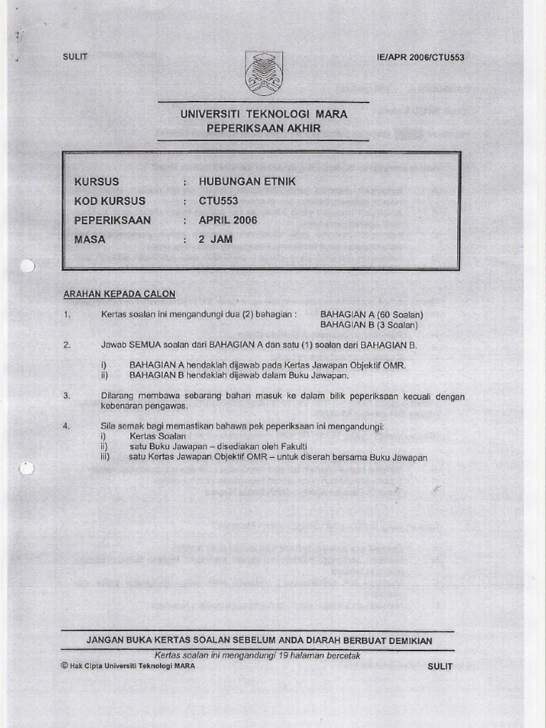 Soalan Peperiksaan Akhir Hubungan Etnik - Koleksi bank soalan peperiksaan ujian akhir tahun bagi murid tahun 4 untuk pelbagai mata pelajaran.. Mereka hidup bersama tetapi tidak bercampur atau tidak bersatu iii. Contoh soalan peperiksaan pendidikan islam tahun 1 kssr via paskahceria.blogspot.com. Jom download soalan peperiksaan awal tahun reka bentuk dan teknologi tingkatan 3 yang. Panduan buat anda khususnya pelajar tingkatan lima yang akan menduduki peperiksaan sijil pelajaran malaysia (spm). Koleksi kertas soalan peperiksaan percubaan spm, soalan ujian, peperiksaan pertengahan tahun , peperiksaan akhir tahun (tingkatan 4 dan tingkatan 5).